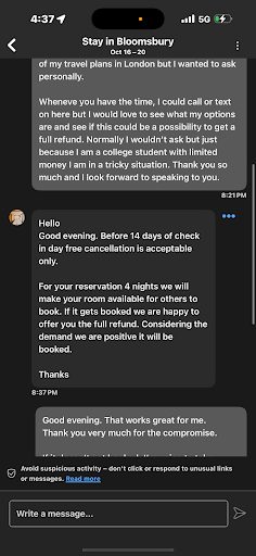 THIS business stole 520$ from me. DO NOT STAY HERE I had a very disappointing experience with this property. I contacted them in advance to request a cancellation and refund for my booking from October 16–20, explaining my situation clearly and politely. They initially told me that if my room got rebooked, they would issue a full refund, and even mentioned that they were confident it would be booked due to high demand. I also added the photo of the booked up room.