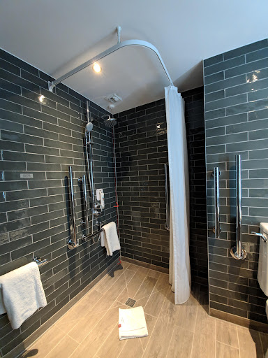 Now for the bad things. Although not all rooms have this, my room had a shower that was open to the rest of the bathroom. This looks very nice, but even with the curtain closed, the entire bathroom flooded every time the shower was turned on. Nowhere was safe from the water and it even flooded out onto the carpet on the other side of the door! There were also some fit and finish issues, with the toilet handle and the coat hangers on the doors rotating freely.