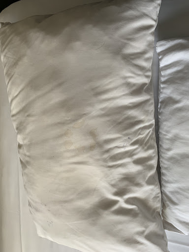 Spare pillows had not been prepared with pillow cases and featured years of dirt and stains. Website photos advertising a generous, clean pillow allocation did not match the reality.