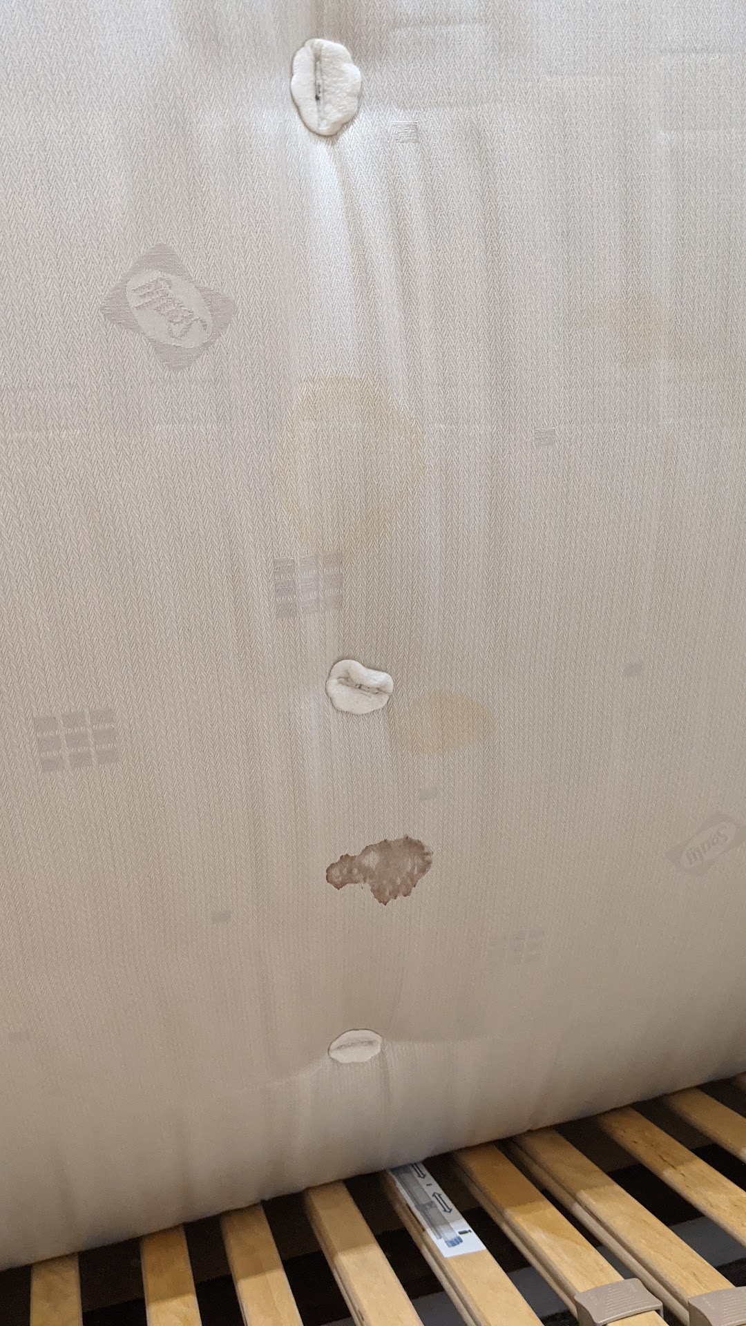 Unfortunately the stay just got worse from there. The curtains were not blackout and due to a building site right next to the room bright light was shining into the room all night. In addition, half of the double bed seemed to be broken and was severely sinking towards the wall. After just a few hours sleep, we took a look underneath the bed to see what was going. Not only was the bed broken, but the base and mattress were stained with blood and the mattress had been turned upside down and flipped the wrong way to hide it. Even worse, when I looked at the wall next to the bed in daylight I could see there was a large patch of blood spatter on the wall.