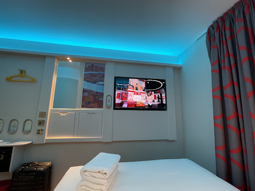 Read moreI was genuinely surprised at how smart and high end this hotel felt despite the low price. Your room offers a massive, comfortable bed, mood lighting, 6+ clothes hangers as well as 4 decently sized shelves, a huge flat screen tv, modern decor throughout. Spacious bathroom with large shower (one downside is that the water pressure wasnt very strong), huge white towels, nice toiletries. The free internet was extremely impressive, so fast and easy to use our entire stay, which is rare for budget hotels. We also had good air conditioning that acted well as white noise throughout the night. The lobby offers sweets, crisps, chocolates, tea and coffee. The location is only 30 minutes from waterloo (half walking half tube) and you have the option to get the DLR as well. Very high end feel to the surrounding area in general (Canary Wharf). Lots of very smart resturants and cafes, free ping pong, basket ball, boating.. you can see the wharf itself is very well taken care of with cleaners and community officers as well as police walking around throughout the day and night. We felt very safe here. Unfortunately there were a couple of cons :( the hotel walls are very thin and we could hear every conversation, tv, music, and footsteps of the other occupants both in their rooms and in the hallways. The three nights we stayed, we couldnt sleep more than 2/3 hours without hearing others arriving back to their rooms, or talking loudly into the night (3-4am). I would strongly suggest you bring headphones or ear plugs because of this, especially if you are a light sleeper. Also, the lobby didn't offer fresh fruit, only junk food snacks, but that's not a deal breaker. Overall, we were happy with our stay and would certainly...
