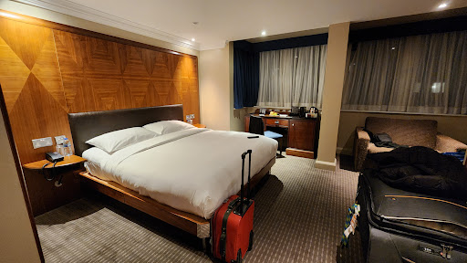 Read moreWe arrived today after booking in advance. We booked 2 rooms. 1 room for 2 adults, 2 kids, and 1 baby. The other room WAS supposed to be a handicap room for my grandparents. My grandmother is in a wheelchair. We arrived and didn’t have a safe place to pull off by the hotel to get my grandmother and wheelchair out. Super fun! Now we get inside and they don’t have our rooms ready. So we waited 45 minutes in the lobby. We go to check in and they don’t have a handicap room available. They gave it away! So they offer us a normal room. We have to take it because we are in a tourist city! You have to pre book everything! So she won’t be able to shower before they fly out tomorrow. FUN! We asked them to set up the couch bed for our kids and no one ever did. 7:30 comes around and I’m getting the baby to bed. My husband had to call down for them to just bring up sheets. This also took forever. In fact my kids wanted to go to bed and tried going to sleep on the plain mattress. Once they arrived with the sheets they rang the bell waking my baby. They handed my husband a huge mountain of unfolded sheets. My husband ended up making the bed. The pack n play looked less than appealing. Im having the baby sleep with me. I went to take a shower and the water wasn’t draining. Eww The carpet needs a good cleaning as well. The staff at the front desk worried more about talking with each other and not about customer service. We went to dinner in the restaurant downstairs because we had a long day and just wanted to eat fast. We made a reservation. When we arrive there was no hostess. The bartender seated us. We order our drinks and food. We get our drinks and a few seconds later the host comes up and asked if we would move tables!( Wheelchair and baby) not a fast transfer. We were all disappointed and disgusted at this point. We got our food and I was even more disappointed. I paid £18 for a burger and chips. My chips were something I could get for £1 at Tesco. My burger patty was still mooing it was so undercooked. I had gluten free bread in place of a bun. The bread literally soaked up all the blood and was soggy! Also I’m pretty sure this was a frozen patty. No flavor and lacking toppings. They didn’t even put on a few things as it said it would have per the menu. The “apology “ for the inconvenience was a free breakfast. Honestly after dinner I’m not even sure I want to eat anything else from here. This has been one of the worst hotel experiences I’ve ever had. That’s saying something because we travel a lot! Very disappointing.