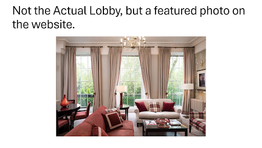 1-The hotel itself. We literally were parked on the back of the building in a « box ». Nothing to do with the Victorian style that you advertise.