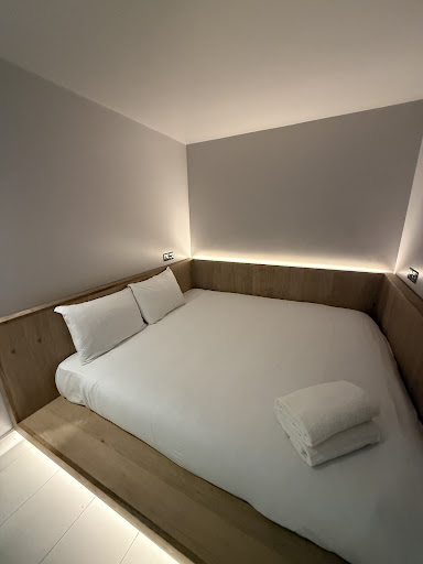 Rooms: The rooms are 4-5 stories underground and very quiet. Isolating almost if you're solo. Very clean upon arrival. A bit damp with weak airflow but by UK travel standards serviceable. Good luck hanging any clothes up to dry; they won't. My "Cocoon 2" room had two hooks above the toilet and two doorknob hooks in the main room for hanging clothing which is definitely not sufficient considering the room also lacks table, chairs, or anywhere else to place items. Needless to say these minimalist rooms do not have a TV, desk, or even a bathroom counter, though there is an Ironing and Beauty room on the same floor. My Cocoon 2 room only had one outlet bedside, another in the entry hallway, but none in the bathroom.