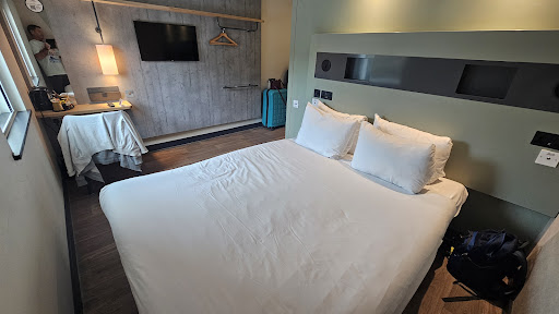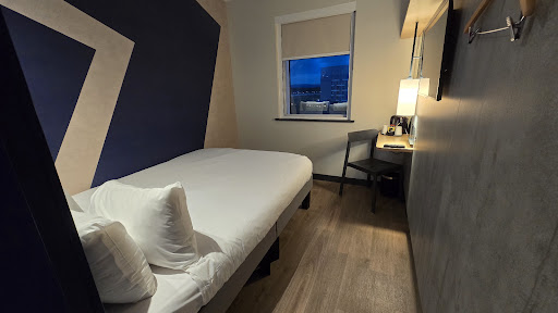 We arrived at around 1 am, this morning following a flight from corfu. We were greeted by a group of about half a dozen, loud, drunk men, very abusive and foul mouthed, in the reception. An elderly couple were just leaving as it was very intimidating. I said to the receptionist it wasn't what we really wanted after a late flight, his response was that he'd had it all day and we should try that!! Nice!! We struggled to hear his instructions on how to operate the lift to the 5th floor, due to the shouting from the group of drunks. We went to the lift, armed with our key card, for room 508 I think it was? The key card had to be swiped on the lift sensor for access. You then had to put a room number in a pad. (The pad didn't have a number 8). I went back to reception, and explained the display was saying error and we couldn't get the lift to work. He was abrupt and rude, said I only had to put the "5" in the pad, not the "508" and it didn't display "error" that wasn't possible, go away and try again. There was a lovely guy cleaning the floor in reception, he said he would help us as the lift can be problematic and it does display "error" at times. We eventually got to our room. I say "room", more like an airing cupboard. It was tiny, the bed against the wall at one side, 3 coat hangers on a metal rod on the wall. We couldn't get the suitcase opened on the floor as the space was so small. The heat was overwhelming, but the window was sealed completely shut. The air conditioning unit was directly over the bed, so having a chronic neck condition, the option of this was not debatable. My husband has sleep apnea and uses a machine to keep him breathing whilst asleep. This needs to be at the side of the bed. This wasn't an option as one side of the bed was against the wall and the other side was less than a foot wide, with nowhere to put a table unless you didn't want to use the bathroom. There was a shelf over the bed, but not wide enough for the apparatus, and the pipe for the oxygen needs to come out of the side of the machine. He had to do without the breathing aid that night. It got better.... the bed was like concrete, and the pillows were shocking, 3 pillows, for 2 people, two so flat they weren't fit for purpose. The tea and coffee facilities were a joke, 2 sachets of coffee, paper cups and 4 tiny cartons of milk, so nothing allocated for the morning! The TV was on the wall, so close to the bed it was unwatchable. On throwing the duvets back we were confronted with a long black hair, nice. In the morning I found a hair scrunchie in the bed too!!! Nice. Thick dust on shelf above bed. Nice. My husband had absolutely not one minutes sleep, I managed around an hour, waking up feeling claustrophobic and unable to breathe, with a dry throat from the air conditioning unit blowing in our faces. The bathroom, however, was excellent!! Lovely towels too. The shower door only opens from about 1/3 way accross, so difficult to get into if you're more than about 8 stone, and the seal didn't exist on the inner edge, so the bathroom floor was soaked, but the actual fixtures and fittings are lovely. (Bit like placing a sequin on a rats backside me thinks!!). We went down to breakfast at 7.50 am, to basically escape the confines of what we could only compare to an airing cupboard. Breakfast was fine, fresh and well presented. The back of the seating was thick with fluff like tumbleweed in an old western movie and bits of food, including a Malteser for some reason. Again, the charming group of men were having breakfast, now sober, but still foul mouthed and quite intimidating. |The price of all this pleasure, which I could only describe as a shocking endurance test, was ÂŁ93. DISGUSTING PLACE AND POSSIBLY THE WORST NIGHTS SLEEP WE HAVE EVER HAD. ...