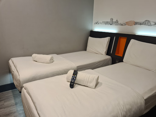 Myself and my wife and our two little children was attending my sister wedding in Milton Keynes so we decided to book easy hotel the prices was showing as cheap online and plus it was in the centre of Milton keynes, which was very convenient for our journey and stay. All the staff was very helpful especially Gareth and another Lady at the reception who was there when we first arrived but we didn't manage to get what her name was. The room we stayed in was a double room, because they had no family rooms available. There was no YouTube and Netflix on the TV. there was no toilet brush and iron in our room so we had to borrow them from the reception down stairs, i did asks the staff why these items are not already in the rooms and they kindly explaind the reason. there was no table and chairs so if you wanted to sit down you only had two options the bed or the floor. So we ordered take away and ate on the floor because we didn't want to get food on the bed where were all going to sleep on. There was also no kettle and microwave in the room so couldn't warm up anything, they did have a coffee machine in the reception area downstairs where we had to go a few times, to get hot water to make porridge for our...