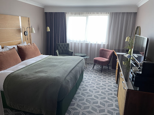 Read moreOn arrival, the first impression wasn’t great. The outside of the hotel looked dirty, with an empty building on one side and construction on the other. I can accept the construction work, but the neglected building really detracts from the entrance.||Once inside, the hotel was smart, modern, and very spacious. Our room was clean and comfortable with a partial sea and lake view. We were also able to watch the airshow from one of the public function rooms, which was a real highlight. The hotel staff running the event were fantastic.||Food and drink prices were steep, so we only ate in the restaurant once at lunchtime. More lifts are definitely needed — we often spent up to 10 minutes waiting because people were calling them on different floors. Some of the low light fixtures are also easy to bump your head on; I saw this happen to several people.||Parking was convenient with an underground option, but very expensive at £15 per night compared to £5 in the nearby public car park. I later discovered that parking is free if you book directly with the hotel, so it’s swings and roundabouts depending on how you book.||The room itself was clean, comfortable, and well equipped with a fan, ironing board, etc., but I felt it was missing some basics such as a fridge and complimentary water (although there were nice biscuits provided daily). Milk was offered, but it wasn’t fresh, which a fridge would have helped with. Paper information was provided, but the text was faint and skewed on the page. I only discovered the TV information system on the last night, and room service information wasn’t clear (and I later heard it may no longer be offered).||Beds were comfortable and the free Wi-Fi was appreciated, though I noticed no pillow protectors, which I’d expect in a four-star hotel. Some of the furniture and décor looked tired (peeling paint, old-style phones, dusty tops of wardrobes). Housekeeping came early each day, but bedding wasn’t changed all week and towel replacement was inconsistent.||Reception staff felt a little cold and unwelcoming. I had flagged in advance that it was my 50th birthday, but this wasn’t acknowledged. A request for a bath mat and extra pillow wasn’t met on the first night and only fulfilled after asking again the next morning — quickly, once the right staff were involved.||A big downside was the Saturday night wedding, which we weren’t informed about when booking. The music was extremely loud and went on until 12:30am. I eventually had to phone reception to ask when it would stop, and only then did the noise finally end. This was especially disappointing as the website advertises “soundproofed rooms,” which ours clearly wasn’t. Adding to this, the hotel bar closed at 11pm, so it was meant to be quiet after that, which it clearly wasn’t.||On the positive side, the hotel left free airshow tickets and personalised seating in our room, which was a nice touch.||Overall:|This hotel has a lot of potential — smart interiors, spacious rooms, great event staff, and excellent views. But the outside appearance, high costs, tired details in the rooms, lack of clear communication, and noise from events let it down. With more attention to detail and better guest communication, it could truly deliver a...