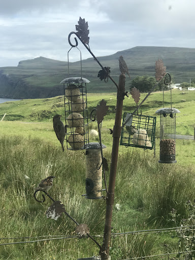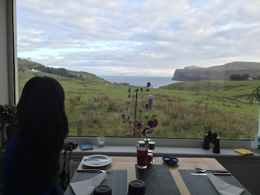 As advertised, the cottage is located in a remote part of Skye, but the extra time spent traveling on single-lane roads is worth it, as the cottage is in a more peaceful environment than one might experience elsewhere on the island. The main room where guests sit and dine has a view of the tranquil loch, a waterfall on craggy cliffs, and the rolling hills, and it’s exactly the view that I wanted to see when I thought of Skye. (We were also told that on a clear day one can see the far western isles, though the weather during our stay prevented that!) The roads around the cottage are not heavily traveled by cars, so it felt safe to take a walk on them, and nearby (within walking distance, if desired) is the Neist Point lighthouse, which was one of my favorite spots on the Skye.