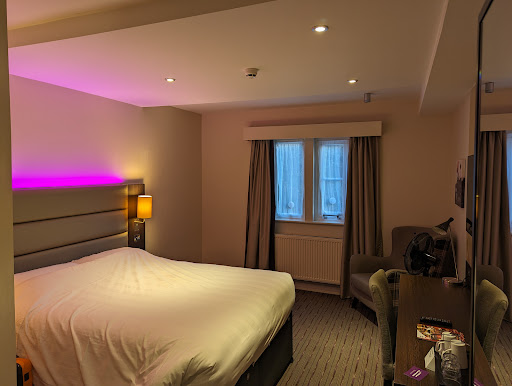Read moreNice warm room, comfortable bed and all facilities. Nice big shower and the curtains blocked out all the light. Couple of little issues that showed up, purely by me being very picky. Said curtains covered the radiator so lost the heat from it. No bedside power socket, needed for my CPAP breathing machine, only a usb outlet. Two tea bags and a few instant coffee sachets in the tray. Toilet paper in a holder across the room from the loo, only an issue for short people though. Too be fair, reception were aware of the socket issue and provided an extension lead on request. Overall, the staff everywhere I came into contact with, were very friendly, helpful and professional. Now comes the downside, paid for a meal deal in the Brewers Fayre which is part of the building. It consists of a two-course meal and a drink in the evening and a full buffet breakfast in the morning. Starter of prawn cocktail was ok, the âmaltâ bread to accompany seemed to be plain brown to me. Main course of fish and chips, what could possibly go wrong? Greasy, soggy batter, overcooked fish, peas and soggy chips that had been under the warming lights for ages. Asked if I wanted any sauce, I asked for mayonnaise. What turned up was the smallest dish they could find with about a large teaspoonful of white stuff in it. Tasted like the cheapest mayonnaise you could find and to make matters worse they had used it to make the tartare sauce as well, which they had waved a few ingredients over to claim its name. Of course, nobody came and asked âhow was the mealâ, I think they knew. Unusually I did not send it back, due to being in a group and not wishing to disrupt the others. Stupid I know. Breakfast was cheap and cheerful but actually good value and I would...
