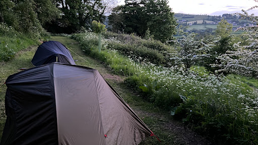 The instructions Stan provided ahead of my visit were helpful and I found the parking place and the camping field easily. The field is mostly wildflowers with a flat mowed terrace cutting through, and it's a glorious place to be. I didn't hear owls but I did hear baby foxes squabbling as I lay in my tent.