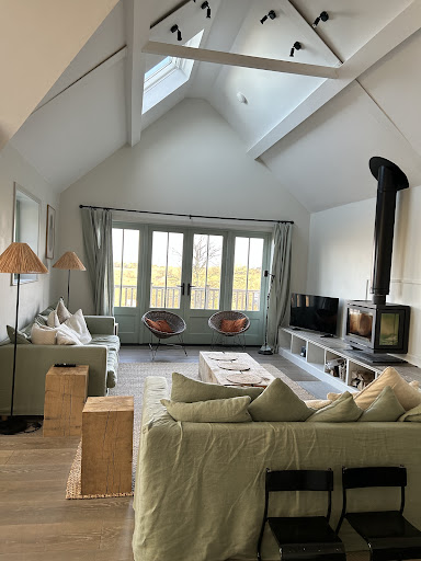 The living room area is so spacious with lots of natural light making for a perfect communal area for the whole house. The bedrooms are cozy with some of the most comfortable beds. There are two fireplaces in the living room that are extremely easy to start with all the necessary equipment along with a sonos system for surround sound music.