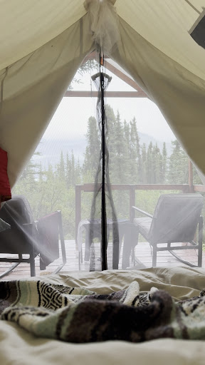 Read moreWhat a fantastic Alaskan experience! We were looking for something outside of the normal cabin/hotel (which we also did) and this gem of a place fit the bill. We reserved a Glacier View tent, and thatâs what we got. The tent was clean and well organized, with a comfortable bed and warm blankets. We were there in late July, and the weather was not too cold, so we left the flap open and slept with just the screen. Waking up in the night and looking out over the glacier was like magic. The restrooms and showers were clean and convenient, and as with everything else, well laid out. The common area had great and scenic seating areas with a nice fire pit and cornhole game. They had board games if you want, plenty of snacks in the kitchen on the honor system, and two taps with good local beers for a relaxing evening. The common area is also the location for a fantastic breakfast cooked fresh. Great way to start the day! The staff and owners were awesome - a shoutout to Colleen, Lizzie, Audrey, and Mandy, but they werenât the only ones. We were in Alaska, so the mother moose and her calf calmly grazing near the restroom shouldnât have been a (pleasant) surprise. If I could give this fine little place six stars, I would. Since I canât, five will have to do. If youâre looking for a pleasant and memorable experience, I couldnât give Alpenglow a higher...