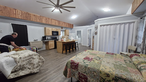 We had the room above the garage. Still don't know the owners names, they never said. Not sure if this room was still in the process of being finished or not. Tyvek insulation isn't covered over with anything. A little tacky. Also he informed us of a door to use in case of an emergency and said the steps were covered in snow so be careful. 🤔 Hmmm. He also said there was a window you could go through if you didn't want to use those stairs. The sign to this B and B isn't readily visible at night and is very small. Other than those things the room itself was nice. One separate bedroom and a bed in the living room area. Connecting bathroom. I liked that it had a washer and dryer in it. I was able to do my laundry. Laundry soap and fabric softener on hand. There is a kitchen area with coffee pot, fridge MW and stove. There is a bar with plenty of stools and a well filled snack basket sitting there. There is a couch with pillows and a TV. Plenty of windows to enjoy the spectacular views. If you wanted to spend time reading while you were there, there is a wide variety of books for children and adults. The guy did make breakfast for us, pancakes, sausage, eggs, yogurt, and beverages. It was good. A little weird that the host just sits down at the table and talks to you while you eat. I guess had l have known that maybe l would have rather taken the food back to our room, but it was served on regular dishes, not disposable. Overall experience though if I was ever in the area again I would recommend...