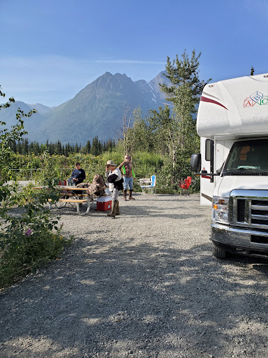 If you have children and want them to be safe while experiencing a night of camping, then Do Not Camp Here unless you want to get run over or dusted out by drunks speeding around the campground. We were registered to camp here, and spent the day riding out to the glacier, but when we returned after our day out riding the campground was filled with loud drunk and foul mouthed partiers. We packed up and left the campground at 10:30 PM on 7/26/2025, because the noise caused by drunk, loud and foul mouthed adult men racing around the campground on motorcycles and ATV's that had damaged mufflers, so it was loud and dangerous. At 10 PM, The Matanuska Susitna Borough (MSB) Park Ranger stopped by every campsite to talk to people about the 5 mile per hour speed limit, and informed us that she was leaving for the night at 11 PM, she mentioned that it's up to the police to deal with anything that happens when she leaves for the night. The MSB park ranger wasn't able to establish anything that resembled order while she was at the campgrounds, so we knew that once she departed at 11 PM the place would slide further into chaos, so we left. The MSB is aware that this campground isn't fit for families, or anyone that isn't partying. I think the only way the MSB can establish a family friendly decorum is to insert a 24 hour/day on-site host with the singular goal: establish a family friendly campground. This is such a wonderful location, it's a shame that the campground is overrun...