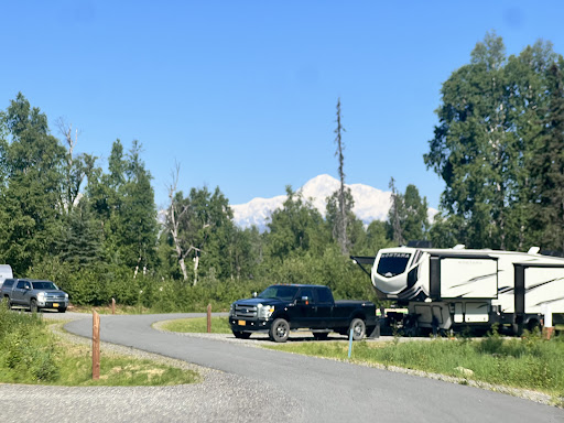 The best campground! The entire State Park staff does an amazing job! There are hiking trails throughout and access to the Moose Flats and Curry Ridge trails from the campground. Great views of Denali when the weather cooperates. Be sure to check out the interpretive center and its trail. Day use parking is available for $5.00. Fee stations currently take cash or card. The RV loop sites have electric hookup and can accommodate rigs of all sizes. $30,00 per night. The main roads are nicely paved. The sites are gravel, mostly level (site 15 being the most unleveled), have a grassy spot for a tent, a picnic table and a fire ring. Must make reservations online well in advance. There are five first come first serve sites that fill quickly. Check in is at 1pm, check out is at noon. There is a big overflow parking lot, just past the interpretive center, if you come and the sites are full. Potable water is available to the right just past the first fee station, before heading into the RV loop. Connect your hose and fill up. There is no dump station on site. Firewood is sometimes available in the firewood shed by the dumpsters for a fee. The primitive camp sites are first come first serve and have a nice sized tent pad, fire ring, picnic table and bear box for your food. $20.00 per night. All sites are well spaced out and the best I have seen. Site one has Incredible views of the mountains. There is a book exchange located in the primitive campground loop, by the fee station. There are currently three cabins on site that are for reservation only. The Denali cabin has the volunteer camp hosts in near proximity. Each cabin have a fire ring and picnic table. There is a group camping area, online reservations only, that is basically a big parking area that can accommodate several small RVs and vehicles. The group area has a grassy pad that can hold multiple tents. There are several picnic tables and a fire ring. A toilet is on the site. Enjoy, always be bear aware and please leave...