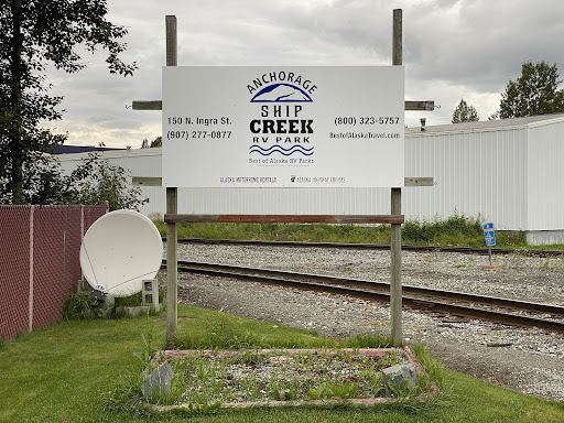 We have stayed at virtually every campground in the Anchorage area over the years and from our view, this is one of the best. Ship Creek RV is an amazingly peaceful and secure little oasis in the middle of downtown Anchorage and John and Heather (the campground hosts) go the extra mile to make sure you have the best possible experience while there. It's important to know that the campsites are near the railroad tracks and this is because the Alaska RR owns the land, but we find the train a somewhat intriguing experience and have even started learning what the different whistles mean. It's kind of fun to wave to the tourists when the tourist trains leave and return every day and we feel secure knowing that the area is patrolled by RR security. I mean, Anchorage is a city and like all cities, it is important to feel safe. We also love that this campground comes with bears. Yup. Black bears. I saw them more than once, but they were respectful bears for the most part and as long as you follow the rules about not leaving food out, they basically just pass through and give you that wildlife experience. This campground has great water and convenient hookups. Because it is older, the spaces a little narrow, but we were able to easily work around that. If you're vigilant, you might find some wild raspberries to snack on around the park and due to it's location, the convenience to accessing Anchorage and points beyond could not be any better. After staying there several times this summer, we highly recommend Ship Creek RV and look forward to visiting again during coming RV seasons. We met people from all over the world there, which really added to...