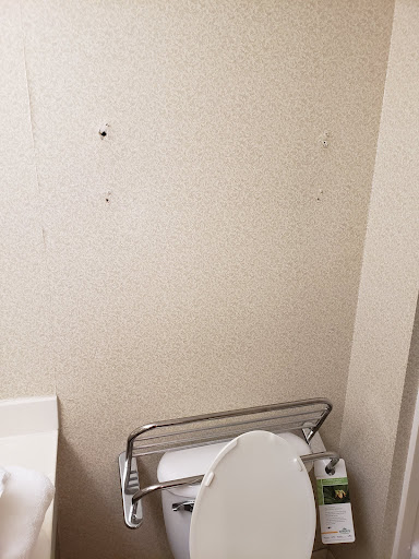 Read moreI chose this location due to the passing of my mother. The room didn't get cleaned out once. Even when I discussed this at check-in. If you see the pictures I posted, there was an assortment of issues from the 1st floor sideboard key entry disabled and partially apart either to vandalism or neglect by maintenance. From the light fixture in the bath (MAJOR SAFETY ISSUE), the cut out above the bathroom mirror, the sink having rust, paint on the shower curtain rod, sink counter looked like it wasn't wiped properly (luckily I keep Lysol wipes in my car), and what appears to be the smoke detector (In their defense [to a very tiny degree] I didn't look to see if one was indeed install and maintenance for whatever reason hasn't removed this from the ceiling). The emergency instructions you would assume is straight forward except they were for the 2nd floor and my room was on the 3rd floor! I didn't like the carpet; it wasn't the best looking on the 3rd floor and the subfloor about 35 feet from the elevator "NEEDS ATTENTION ASAP" before someone is filing a law suit when they fall through the floor. Overall on the carpet it was "not pleasing" to the eye throughout the hotel. The ice machine wasn't working on the 3rd floor had to go down to the first floor if I needed ice. And before I forget, there was no phone in the room. Thank goodness we live in a society where everyone has a cell phone so I could at least call 911 if it came down to it but if I had to call the front desk, I would have had to "Google" the damn hotel to get the front desk number! SMDH.