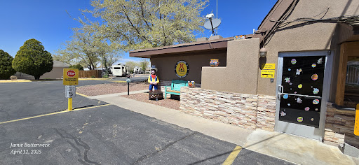 That night was terrifying. We were told by the office to "use extra stakes and secure our tent poles with duct tape or go get a hotel" and "welcome to albuquerque" all in the same sentence by a young arrogant kid. Our neighbors purchased a tarp and rope and we used our very expesive rain fly to block wind and moved both of our tents into the pergola. Although extra money was spent, both the rain fly and tarp were ripped, we got scared for our children and "slept" in our car. But let there be no mistake, 45 mph wind, no way compared to the highway traffic for the remainder of our stay. They simply need to move the tent sites and build fences around each site. You are basically stuck in the center of a gravel filled roundabout, completely exposed to all weather other than the roof on the pergola, which I might add, that they tried to kick us out of until a very nice lady made the call to let us stay in. She also came by to make sure we were okay. They need to give people like her a raise and fire that punk kid with the...