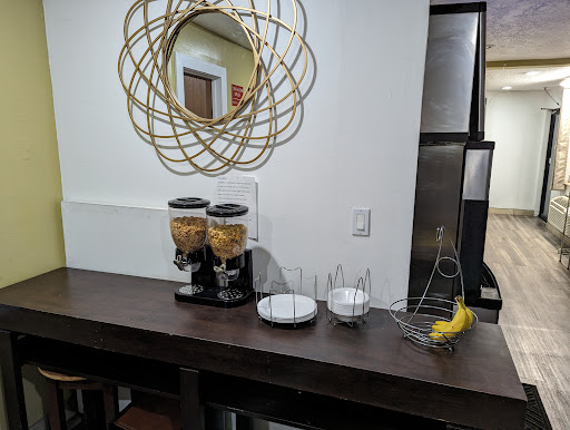 The staff member finished their smoke break first before trying to check us in. I say "trying" because we legitimately stood there for 15 minutes while she fumbled around on the computer. She still got my info wrong on the paperwork. The lobby was trashy, smelled bad, and had dirty towels piled on top of the tables in what was a poor excuse for a breakfast area. A tweaker walked up to the counter while we were trying to check in and was trying to get the staff to give her food.