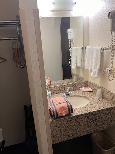 Read moreFirst of all the staff is very friendly and accommodating! We had a complicated stay that they were able to take care of. The outside looked freshly painted and in good repair although you could tell it was an older building. The inside had an off odor but not totally disagreeable. Our room was on the 2nd floor, no elevator, has interior hallway. Breakfast was a subset of your standard serve yourself hotel breakfast-2 cereals, muffins, milk, juice, coffee, bananas, make your own waffles and obligatory tv tuned to a am news show all in a small crowded room. The hallway was FREEZING but the room was comfortable. Seemed like the a/c was turned to blizzard even when it was 65 deg outside. The room was big enough for the 3 of us but not much maneuvering room. No closed. They had a small rack with clothes hangers about 3 feet above the desk, Very awkward place to hang clothes that were ironed with the supplied iron and irong board, which by the way, was hung on the wall next to the desk. The sink area and bathroom/shower areas are separate and very small. The bottom of the tub made noises while walking in it. The light took a few minutes to "warm up" to full brightness. There is an included microwave and mini fridge for your use. The beds have a metal skit that moves around and makes noises also when you move around on the bed. Hope it didn't transmit to the people...