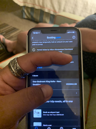 Read moreWe are top tier Hilton members and booked and paid points for a 2 QUEEN SUITE many months ago because of the location and our affiliation. When we arrived we were presented with a choice of 3 rooms, all of which were handicap rooms with one queen bed, a sofa, and a refrigerator. The employee said take it or leave it since balloon fiesta started the next day and all the local hotels were sold out. I asked why our room was not the accommodation we paid for. The response from the employee was that there was a problem with our room and they could not give it to us. In English I believe that means that they were able to charge somebody else a very high price for our double Queen suite and therefore they were not going to allow us to get a free room with points. A disconcerting relationship with Hilton has just begun. I have many millions of points with the Hilton establishment but I am rethinking that relationship now. Our family was all adults and none of us wanted to sleep on the sofa or a roll out cot. I asked if I would receive back half of the points i paid for the room since i received half of the bed accommodation and was told no since the FLOOR SPACE IS THE SAME IN A 2 QUEEN SUITE AS IN A SINGLE QUEEN ROOM . Funny, I hadn't considered having any of my family members sleep on the floor so why would the floor square footage matter ? The fire pit was out of service in this week as well, just like others have pointed out that last week it was out of service. I asked about the fire pit and we told I could go buy charcoal at a store and use the barbecue pit instead, hmmm yeah I don't think that's the response that the Hilton executives would approve of. The indoor pool closes early. The Wi-Fi sometimes worked and sometimes did not. The bathroom contained many bright lights on one single switch and no night light option, so first thing in the morning your options were 1000 watts or zero. Only two towels were in the bathroom so we had to ask for more. The handicap shower is not a good design because water ends up all over the floor no matter how careful any of us were to try to keep it in, a shiny non-textured floor is a slip hazard. The air conditioning was VERY loud and cycled on/off every couple minutes so we had to turn it off at night to sleep. The A/C also blows the makeshift closet made it out of a rack & a shower curtain in the room so that the hangers bang together or the shower curtain crinkles in the breeze or against the wall loudly. The 'lamp' next to the bed was 2 bare bulbs with some kind of metal rack on top (see green arrow in photo). The two lamps next to the sofa had white lampshades. The hallway was loud late at night with the sound of other people's tv's and conversations. When we checked out Monday morning before 8am the 2 girls at the front desk (maybe 18-20 yrs old each) didn't seem to know how to close out the room, write down a number and asked if that was our room#. I'm not sure the one knew numbers in English since it took several tries to get it right. Then I tried spelling the name, when that didn't work I walked out and left the keys with them. This hotel is an embarrassment to Hilton, but in a good location. I wouldn't consider staying here in the future. We couldn't bring ourselves to eat at their restaurant since the breakfast looked to be high in carb, fat & sugar so we ate all...