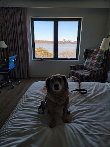 The location is ::chef's kiss::. Walking distance to so many parks, restaurants, coffee shops, and the Old Town Book Shop (also pet friendly!) where my dog and I were able to find a book for me to read while she happily sunbathed and made friends with passersby in one of the many lovely places to sit outside the hotel with a view of the river. The hotel also has a lovely library - not much in the way of a selection, but a sunny spot to read your own book in on colder days, if your room/travel companion is making you want some quiet space. ;)