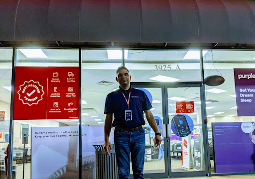 Upon entry, we were immediately greeted by a friendly sales associate (we aren't sure of her name but she was great at orienting us to the sales floor!) and then were introduced to Nagendra, who we worked with the rest of our time at the store. The experience started with a test of firmness on traditional spring mattresses (hard, medium and soft) so that Nagendra knew what we preferred. We then tested a hybrid mattress in our preferred firmness where he explained how adjustable bases worked and their benefits. After that, we were introduced to the Tempur-Pedic line (almost exclusively memory foam) and walked through the different models available in our preferred firmness. Nagendra and other associates in the store were amazing about answering questions and explaining how different models of mattresses and bases compared to each other. We did end up testing out a model that Nagendra hadn't pointed us to and were very pleased with his explanation of the brand and the pros and cons it would provide us with based on our preferences. I assume this is not the same path everyone would take, as we were asked other questions about how hot we sleep, if we have body pains, if we have sleep apnea/snoring, our budget, etc. We ended up buying a bed and base, able to be delivered within 48 hours if we wanted, and received a great deal due to the Labor Day weekend sale on offer. Mattress Firm is able to provide a price match based on any brick and mortar or online store, and we qualified for 0% financing for 5 years. They also added on a bundle of high quality sheets and pillows for an additional price, which could be unhelpful for some, but we appreciated as we are significantly changing mattress sizes. We are extremely excited to receive our new mattress and if we end up not liking it within 4 months, can return it! I would also like to add that we were never the only people in the store and saw that nearly everyone who entered left having purchased something. Thank you so much Nagendra and the rest of the staff at Mattress Firm Potomac Yards for the amazing...