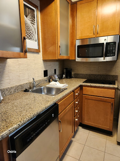 Read moreLet’s start with the bad: -Water temperature. I took a shower yesterday and I couldn’t even get the water warm. Just took a shower now and had it on the coldest setting, almost burnt my face off. My face was so red after my shower and my skin felt so dry. My baby woke me up at 5am and all I wanted was an enjoyable shower. -Pay to park, $32 per night. The Holiday Inn less than a mile from this hotel has free parking. That said, we stayed here for the 1 bedroom suite because of our 5 month old son and the convenience of having a separate bedroom. Now the good/ great: -Free breakfast is honestly pretty good, and I’m shocked to even say that. Definitely the best hotel breakfast I’ve had! Only annoying thing is guests toast their own bagel/ muffins etc. and consistently burn their breads, thus causing the entire room to smell less than pleasant. Weekdays, breakfast goes until 930am and I’d personally like it to go until 10am but that’s my personal opinion. -The suite has everything you can imagine when it comes to the kitchen. They really think about the long term stay guest. I mean there’s all the kitchen essentials you need, minus a toaster and oven in the one bedroom suite. The stovetop works amazingly and I’m obsessed with the ice maker in the freezer (weird, I know but it’s so convenient to not leave the room for ice). -The rooms are modern, clean, and well appointed. -Hotel staff are friendly. I wouldn’t say above and beyond but they understand quality customer service. I worked at a Marriott hotel in Boston and know what customer service in hospitality should look like. The staff here are definitely up to snuff. -Parking is underground and double gated, so I understand having to pay for the safety aspect. $32 a night is excessive though. -Our room was right next to the train tracks. Upon entering the room I wanted to cry/scream seeing that because I thought my 5 month old would wake at every train passing (we drove 10 hours to get here so my reaction is extreme). I was going to request another room but decided to give it the benefit of the doubt. I have to say, we didn’t hear a peep for the entire 5 days we stayed here. These windows must be quadruple thick or something. So happy about this!