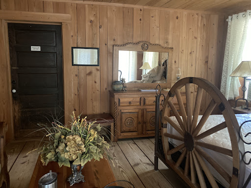 There are 38 campsites. 9 of them have 50 Amp hookups, 29 have 30 Amp, and 17 have sewerage. They also have 6 heated and cooled cabins, 3 of which can sleep 6 people, 1 sleeps 4, 1 sleeps 3, and 1 sleeps 2. Linens, bedding and towels are provided. The Outdoor Cooking Pavilion seats 96 and has 2 Kitchens, 3 smokers and 3 grills. There are Potluck dinners every Saturday night at 6:30 PM and afterward, there's music, karaoke and dancing in their "Ole Time Saloon". For guests not into music, there's the community fire-pit or individual fire-pits are available through the office. The "Trading Post" (office) has toothpaste, mouthwash, saline, charcoal, shaving cream, etc., etc., etc.