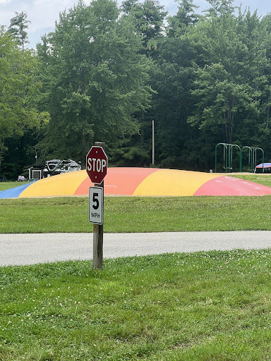 nice playground and rec hall. Grands loved the jumping pillow. Nice recreation area w/ everything centrally located in a giant area in middle of campground, adjacent to the pool, bathhouse, & rec hall. Lots of yard games - horseshoes, badminton, giant connect four game, a mining area for kids with water for sluicing to find treasures in sand, NOTE: the bags of sand were very very expensive. Order some from Walmart & bring them with you. The pool is big, has a diving board, plenty of chairs, & lots of pool toys. within 35 minutes to Portland and 20 minutes to Kennebunk. The town itself is adorable. Walmart /other stores 7 miles away. the office & camp store closes at 4 pm but they allow people to take ice & wood & put the money in a box. buildings are very clean. The bathrooms are nice and bright. Rec hall has lots to do in it for people of all ages. nice to have a dog run nice, clean laundry room! You must download app to use the machines. See note about internet above. Price was much cheaper than other campgrounds nearby.
