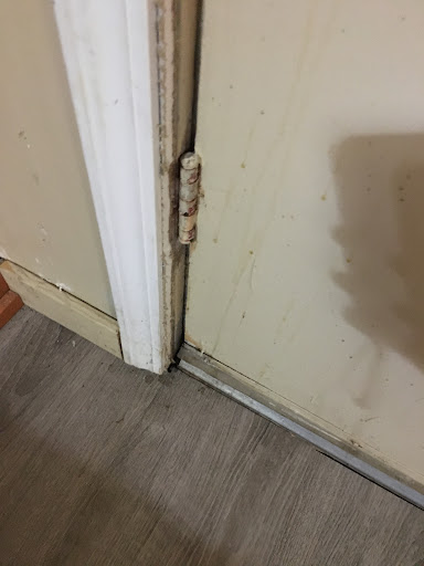 The way they have the electrical cords seat up is a fire hazard too, I have a picture of that and its the only outlet in the entire room. Other than a completely useless one on the ceiling for some reason I was able to take a picture of by the clothes hangers. Also wallpaper ripped, falling off the walls and ceiling as pictured in the bathroom ceiling, and writing on the bathroom wall.