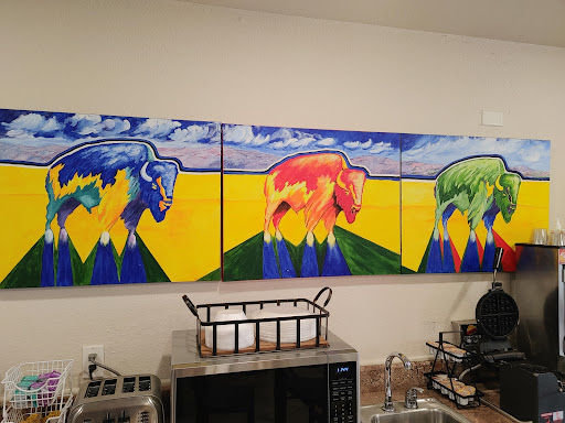 “We stayed here over Thanksgiving 2022. Our room was awful. The carpet was stained with big stains were things had obviously been spilled and small stains all over that looked like makeup or food not sure. The carpet was stretched so badly that it was folded over in some areas where it no longer would lay flat. The drapes in almost every room were water stained, and mold stained where they have been wet from condensation. They were also dry rotted and literally falling apart when touched. The towels in the bathroom were white at one time I’m sure but are now a light tan. The sheets were no better. Neither looked clean as they were dingy and stained. My pillow case had mascara still on it along with other stains. They very well could have been clean but gross non-the-less! The bathroom had holes in the wall above the shower and the corners of the floor had orange mold. The toilet seat was chipped and the white paint was gone from use. The second night of our stay that was already paid for but I could not bring myself to stay. My daughter and I left and went to my in-laws and stayed on the couch. This property needs a major renovation and cleaning. The staff was friendly enough but I will never return. For the price I didn’t expect 5 star but I did expect basic maintenance and...