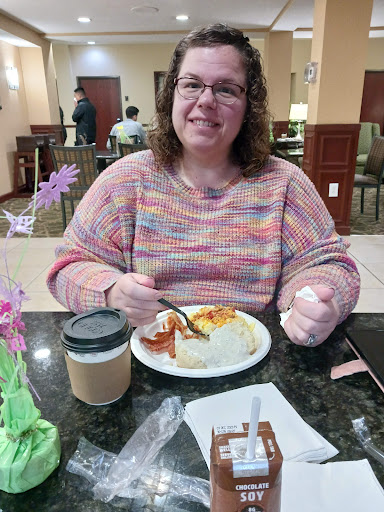 Read moreWhen we arrived and was checking in they didn't have down that we had a dog. Booking on Expedia the info did not transfer over. We had booked a King room with a walk in shower. Once the knew we had a dog they wanted to move us to a pet friendly room that was 2 full size beds. My husband asked for a king room and walk-in shower again. The gentleman at the desk was hard to understand but that was ok, he was very nice and accommodating giving us what we asked for minus the walk in shower. The room was very clean and fresh. I did get an extra blanket from front desk so I could put over the sofa so our long hair German Shepherd didn't leave behind so much hair. They thank me for that since we were not in a pet friendly room. Housekeeping was the best, very friendly and helpful. Bob and Pinky did amazing making sure our stay was the best it could be. The breakfast was soooo gooood. We had ham, bacon eggs and biscuit and gravy one morning and ham and sausage with eggs and french toast the next. Plus you had the waffle bar with 2 different kids of batter. The cereal bar with fruit, toast, bagels was stocked and everything was fresh. There OJ was not watered down like most places. They even gave us extra ham and sausage to take back to our dog each morning. Melissa that worked the breakfast bar was so sweet and made sure we got plenty of food and kept the dinning room cleaned and stocked. Thank you for making our weekend from home a pleasant stay. The hot tub was a bonus for me. The pool area was clean and towels were kept stocked up. If you are ever in Anderson Indiana check them out. $375 for two nights for two adults that included the $30 pet fee for each night was a deal. Since we got a breakfast that we would had to pay $30-40 for if we went...