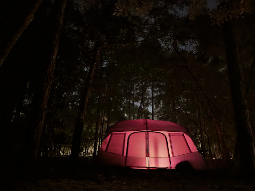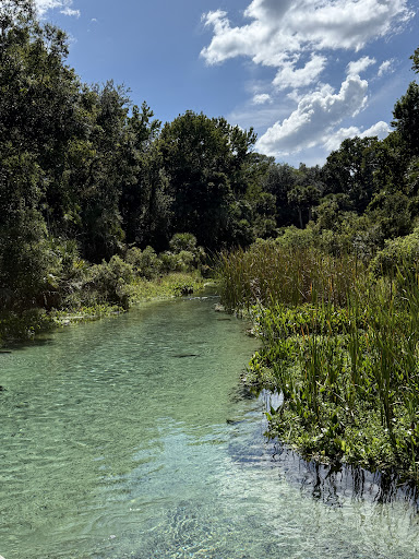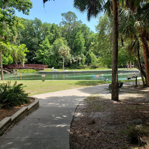 My wife and I camped here in our 20' compact travel trailer from August 11 - 14, 2025. Overall it was a fun experience but there were a few quirks about the facilities that could be improved. We'd made our reservation about a month out, and the campground was only about half full when we arrived. After reviewing the campground's map we decided to reserve Site #11 because it was close to the restroom/shower facility (50 yards walk away) and it was on the outside of the loop road that circles the campground. We made our reservation about a month out, and the campground was only about half full when we arrived. The morning of our arrival date, we called park's office to see what was the best time to arrive since this campground is part of the Rock Springs lazy river water park and it's often super crowded during the weekends and most summer days whenever the kids are out of school. The staff told us that we should get there about 12:00 pm even though the official check-in isn't until 2:00 pm. We actually got there about 1:00 pm and there was a police car and armed deputy at the gate to deter young gate runners after the Rock Springs area hits its 350 visitor limit each morning shortly after it opens. When we checked in at the office (near the springs), the staff was very pleasant and gave us a map and instructions on how to get into the campground. You have to drive back outside the park's perimeter fence, then drive north about a quarter mile, and then go in through a keypad coded entrance gate to access the campground. This prevents hooligans from trying to get into the Rock Springs swimming area via the campground after the park reaches its max capacity once the park opens at 8:00 am (almost every day during the summer). Before we'd arrived, we'd read online that all the campground sites had concrete pads, but where we got there, we learned that the concrete pads were really to elevate the picnic tables off the dusty and sandy terrain below them (not to park your rig on), so we wound up parking on the dirt. Additionally, the shore power box was correctly located on the left side of my camper as I backed it in, but the water hose spigot was on the opposite side of the site, so my water hose wasn't long enough to connect my camper to it. It was not that big of deal, but just made no sense to me on why they laid the site's hookups out in this manner. The restroom/shower house was relatively new and had four shower bays (one large one for ADA) one urinal, and one double sink (see my interior photos). The water pressure in the showers was a bit on the low side, so you had to run the water for about 3 minutes before the hot (warm) water came out of the shower head. The double sink where you shave (for men) had those annoying push button water-saver valves (instead of spigots), no hot water and no shelf to lay your ditty bag on. Additionally, there is no AC in the restrooms, so it was a bit steamy inside during August. As far as cleanliness, we only showered late in the afternoon during our 3 night stay, so by that time of day, the floor was somewhat muddy because the cleaning was done early in the mornings. There are no sewer hook ups at any of the campsites but they do have a dump station and rinse hose on the road exiting the campground. The nice thing about this campground is that you can walk about 300 yards south and enjoy the Rock Spring lazy river area, which is really beautiful and refreshing to tube and swim particularly during the hot summer months. There are also two nice hiking trails here at the park that area easy to navigate and have some good scenery. Other challenges associated with this campground is it's located in a rural area, and there is only one place outside the gate about a mile away to get dinner and drinks (and it's kind of a biker bar, but with friendly people). We stopped in there for a beer, but for dinners we drove to Mount Dora (12 miles NW) which has some excellent...