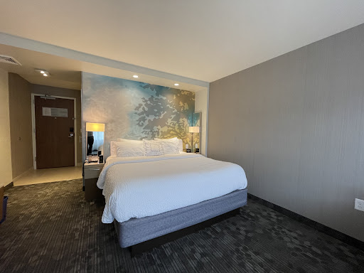 We really enjoyed our one-night stay here in a king room. The view of the river from our room was wonderful. The bed was comfortable and supportive. There were covered foam wedges in place of a headboard, so no loud banging from neighboring rooms. In fact, this hotel is really quiet in general. The parking lot was pretty full, so there must've been plenty of other people there, but we didn't hear a peep from rooms near ours or from the hallway. The magnifying mirror in the bathroom was a nice touch. Lots of space for toiletries on the counter and in the shower. The walk-in shower with drain tray at one end was a good size with a few different spray options on the shower head. The closet door was mirrored on the inside and outside, which would be very handy if multiple people are getting ready at the same time. The couch was comfortable with the angled back and ottoman. The lobby was a good size with lots of hangout space. There was a key scanner and doorbell to enter the hotel lobby late at night, which was a nice added security feature. There were only a few negatives here, in the room. The mini-fridge is smaller than others we've used. We had two quart-sized water bottles and two 20 oz. soda bottles in there and there wasn't much room left. The bathroom faucet actually made me laugh... It was installed in a way that the arm just barely comes over the sink. It was awkward to wash my hands and I splashed the counter even when I tried to avoid it. The faucet worked and it was nice, but it was not a great choice for this bathroom. My biggest negative was the TV. It is installed above the desk on the wall next to the bed. Unfortunately, it is stationary, with no adjustable arm, so watching it from the bed is not ideal when you want natural light from the window. The glare from the window combined with the awkward viewing angle was a little annoying. However, none of the negatives I mention would prevent me from staying there again. I would absolutely go back. I like booking a room with as much information as possible, so I try to put as much out there as I can for others...