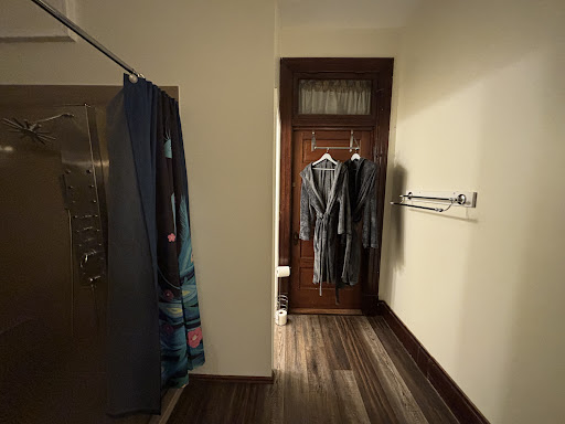 The St. Francis Suite was spectacular! Soaring ceilings, wooden floors, large dreamy canopy bed, HUGE 2 person bathtub (which we used and enjoyed), thirsty bathrobes, oversized bath towels (which I really liked), separate sitting room with large flat screen TV (we never turned it on...no need), refrigerator, coffee maker and microwave. The St. Francis Suite has it's own private outside entrance and is on the ground floor. The other rooms in this B&B are on the second floor.