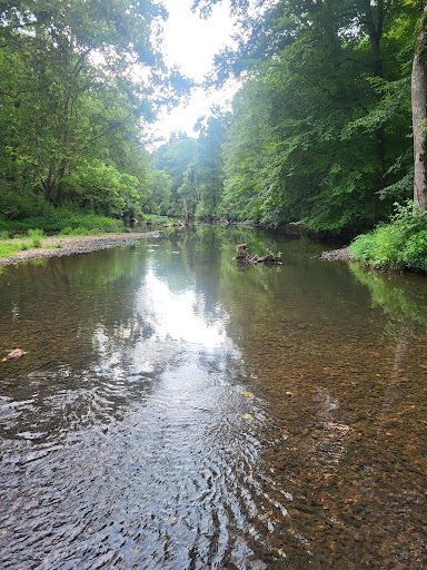 Our site A-17 is ideal for our 45โ 5th wheel along with our dually truck. This is among a number of pull-through sites where the elevations and the angles are staggered providing privacy and terrific views of the forest. Do come prepared as your site may have a fair slope but once set up itโs easy to enjoy. This is a perfect blend of wilderness, camping, and luxury living that Iโve not seen in other parks. Even though there are plenty of trees I was never concerned about damaging our rig while maneuvering. We are able to take nice long walks along the river or just through the grounds. Centrally located are the tiered ponds with waterfall and dock. In the evenings you can hear wildlife everywhere but especially at the ponds. The fireflies were a special treat. Thereโs a very large playground with all sorts of fun stuff complete with full horseshoe sand boxes. The sites each have a firepit with grill and the picnic tables are an industrial grade rubber coated steel mesh that drain off rainwater. The wireless internet is incredibly fast. At 35 Mbps down and usually faster one could stream HD video on several devices and not see any buffering. Uploads are easily as fast or faster. This is very uncommon for any park but this place was designed by an engineer and he and his wife are expanding with tons of projects. Ask them about that.