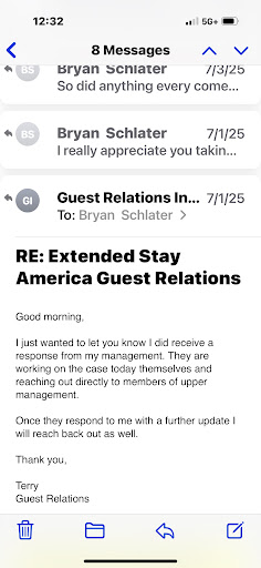 Ā Ā Ā Read moreDO NOT STAY HERE! Where do I start? Well first off the lobby looks nice but beware once you go through those doors to your room, the smell of trash hits you in the face! Figured Iād just rough it out since I was only going to be there for 12 days and working the majority of the time and only needed a place to sleep and shower. Day 2 while at work, with no notice whatsoever, they had workers in my room to swap out the furniture. I personally donāt understand why it couldnāt wait till I checked out or asked me to move to a different room that had the furniture already swapped out. I had cash and valuables left out. Fortunately nothing decided to āwalkā! The entire stay there were people that werenāt staying at the extended stay, running the hallways at all times, day and night. This didnāt make for a good nights sleep. The exterior doors were constantly propped open to allow these āvisitorsā access. When you would go out and actually shut one of these exterior doors you had people threatening to fight you for access to the building. I had to use the excuse that I forgot my room key as well, and would have to go back to the front desk for access to avoid the confrontation as much as possible. I had approached management about this and they stated they were aware of the problem and āworking on itā. Next I go to the store to get some food because the point of an extended stay is the kitchenette. Itās meant to reduce food costs while traveling for work. I went to the store and got some groceries and put them away. Asked for their complimentary kitchen pack and was given a couple of plastic cups, a bowl, and a couple of paper plates. Pretty sure theyāre supposed to offer some cooking items like a couple pans ,toaster, utensils, ect. So needless to say I was unable to cook any of the food I had purchased short of some microwave cheeseburgers. Upon taking food out of the freezer I noticed that the food was not frozen. Freezer was bad. Addressed management with this problem to only be offered the resolution of keeping my food in their freezer downstairs. In my opinion thatās not a resolution. I shouldnāt have to leave my room, go to the lobby, wait for someone to come to the desk, and then go retrieve my food from their freezer. All this over the course of 12 days, well 11 because I checked out a day early. Contacted their guest relations May 21st, 2025, about my stay at Arlington-Six Flags. The site manager refunded me 1 night, 69.04. I told him that didnāt even cover the cost of the food I had to throw out and I didnāt feel like that was a proper resolution. He stated thatās all he was going to do and I could contact Extended Stay upper management if I wanted any additional reimbursement. I called, and called, and called, and called. Their customer service people are solely āgatekeepersā for upper management. You are told youāll receive a call back within 48 business hours. You wait, never receive a call back, only to call back and have to wait another 48 business hours. After a month and a half of this run around I demanded to speak to their supervisor , the ones not returning my call within 48 business hours. Finally reached a manager by the name of Terry. He emailed me so I supposedly had a direct means of contacting them. Received the email pictured below only to be blown off for another 3 weeks. Note all the times I had emailed them since. Called today July 24th,2025 to find out that they had received a resolution on July 8th from upper management. Guess what? The resolution is the one night they refunded me was all that they were going to do! So not only is Arlington-Six Flags Extended Stay not worth the 69.04 a night. Their guest relations doesnāt treat their...