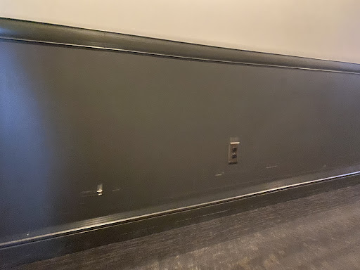 The room was not clean, leftover food items and trash in the fridge and cabinets, and baseboards peeling off the walls or missing.