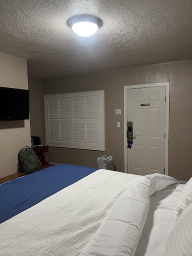 Read moreIf I were to guess, I'd say that this was an old motel, purchased by one or more recent college graduates, perhaps from SOU across the street. As others mentioned, the management and staff are very welcoming and friendly. ||||The furnishings are spartan, and many of them remind me of things we got my daughter when setting her up in her first off-campus apartment. No desk. No closet, but a metal rack with hangers and shelf space. As a result, horizontal storage space is a bit tight, though it was enough for two of us. The bed felt old when I first sat on it, but it was actually fairly comfortable. No decorations on the walls, but multiple paint colors. The bathroom was fine, and obviously updated. Overall; minimal, but functional.||||The most annoying thing was the room key--it took me a while to not-quite master the correct combination of insert, pull out slightly, turn, pull out a tiny bit more and turn again that was needed to open the door. That had me a bit nervous about getting back late from a play, when no-one would be in the office to help us. But I got it to work after a little fiddling.||||No breakfast. There is a good, albeit expensive breakfast place next door, where we ate on an earlier trip. This time, we ate across town, where we were meeting somebody. If we weren't, we would have just made use of the fridge and microwave in the room.||||Not sure if they have free wifi. I saw a locked network, but they didn't give me a password when I checked in. Wasn't worried about it, given that I had lots of data, and we were mostly interested in seeing a play.||||Overall, I'd definitely stay there again if I only needed a room for a night or two, and my preferred locations weren't available. But it's not my style for longer stays. It might be more for you if you're either in school or have only recently graduated. Or if you're older, but want to harken back to the days of crashing out in your college...