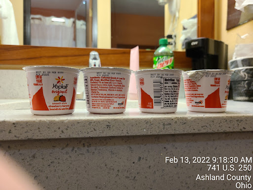 The BAD: Our room was missing the tv remote. For whatever reason, the tv was unplugged and there was no remote to be found, so we couldn't use the tv. The fridge was missing. Even though we booked and paid for a room with a fridge, there was no fridge. The bathroom door wouldn't shut and stay closed. This was a danger incase our toddler got curious in the middle of the night. The main door to the room appeared to have been kicked in at one point. The strike plate was completely missing, the lock barely engaged with the hole in the door jamb, the security latch was also missing, and the door frame was so crooked that you could see out and into the room with the door closed. I'd assume this is a MAJOR privacy issue. We rely on the security latch to keep our kids from trying to escape the room but we lost a lot of sleep just trying to make sure they didn't get up in the middle of the night and try to open the door. While the room was mostly clean, we did get a bonus can of mountain dew in our window-sill. The next morning, we got to breakfast about 45 minutes before it closed but the hot food was all gone. There was no more hot food being made, so we settled on yogurt and cereal. Went back for seconds on the yogurt and found that every single yogurt in the cooler was expired by 4 days. Cant' really prove if this expired yogurt was the cause of my son's upset stomach for the 5.5 hour drive home or not, but if a business is going to offer up complimentary food, it should not be expired just for public health reasons.
