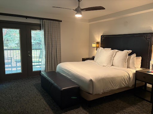 We reserved a one-bedroom presidential for a weekend in Aspen. A spacious room with mountain-themed decor. The fireplace in the room added a romantic flare and was soothing to watch. The bed was comfortable with adequate storage and quiet for sleeping, though located on Main Street. The bathroom was huge, and the water temperature and pressure were excellent. The kitchen and counter area provided space to sit and enjoy a cup of coffee and a snack. Our room was on the second floor, and we had a balcony that provided a greater connection to the alpine feel of the resort with evergreens next to the space. ||The staff, when checking in, were accommodating and helpful, guiding us with excellent recommendations. One evening, we used the gas fire pit for smores, and they had sticks to toast marshmallows. ||The resort is close enough to downtown to walk and enjoy the scenery. It is only several blocks from the main dining and retail areas. If walking isn't your thing, the resort provides a shuttle with a phone number for access.||The small fitness area has enough variety to provide a quick training session. The resort has green and black wheel-shaped dumbbells, medicine and stability balls, one adjustable bench, some cardio machines, and one multi-use selectorized machine with a bar where you can complete pull-ups. The room is on the basement level and hotter than needed.||The pool was not in use, but the hot tub...