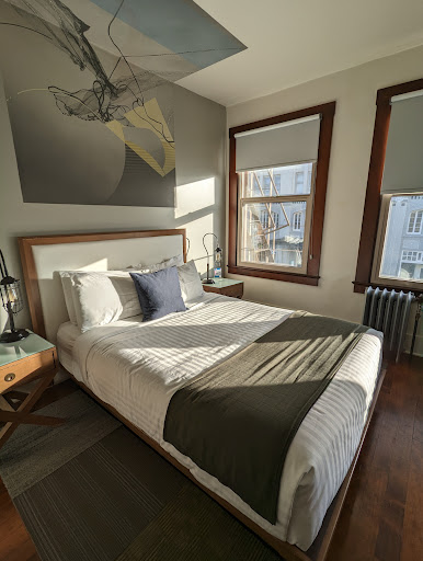 Read moreI booked this rather last-minute, less than 48 hours prior to us checking in, and the pricing seemed to reflect this, though I would still say it was fair. We booked a standard private room on the second floor and it was very nice!! I peeked into the shared bathrooms (the toilet and sink were in their own room, shower was in another space, looked like three of each on our floor), and they were very clean. The building is older but seemed well-maintained, though with wooden floors so there was definitely evidence of it being pet-friendly. There is an elevator, which was nice since we brought our two elder pups with us and stairs can be difficult to navigate, especially when carrying luggage. The lobby was welcoming, every staff member we interacted with was friendly and helpful, and they have a small self-service snack bar. Overnight/after hours, there is a clipboard for you to enter your information and what you took, they charge you accordingly. It was a simple, useful system, especially when the 2am munchies hit. The room itself had a queen bed, surprisingly comfortable, with nice bedding. There was a small couch and coffee table with an electric kettle, a large glass bottle of water and two mugs. The bathroom was small but clean; the shower got hot really quickly and the water pressure was excellent, but the tub did take awhile to drain and it would fill with about an inch of water in the bottom during a ~10 minute shower. The room also came with a fan (!) and a white noise machine (!!), which I was certainly excited about. There was a small closet space with six hangers and a small bench, perfect for luggage and a place to put on one's shoes. Overall, while not the height of luxury, it was very comfortable, we were extremely pleased with our stay and we will likely return.