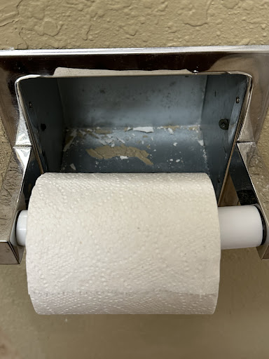 Read moreUpdate- drain plug installed and dryer hung on wall. But today I opened door and hydrolic hinge broke. Then my daughter was standing on stool so I could alter dress and she saw a used needle on top of cabinet. This is VERY unsettling. They need to keep some Clean, safe rooms for paying customers! NEVER a manager here. Dryer didn't work and no sign on it. They all knew it didnt work, So I put a sign on it! Added some pics of the door repair- removed hinge 🙄. I DO NOT RECOMMENT STAYING HERE. STAFF IS NICE, BUT MANAGER (WHOMEVER THAT IS) DOES NOT CARE ABOUT YOUR SAFETY.