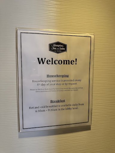 Room 805- (It is a joint room. I hate those, so the stroller went right in front of the locked door). The beds are comfortable, enough pillows to lounge and get comfortable, great sized TV, decent view of the area from the window, plenty of lighting in the room, and curtains to hide the outside light when needed. Quaint closet space near bathroom. Bathroom is clean, but I always have a problem with the coffee make being in the bathroom, especially with the humidity and splashing water and those tea bags. Enough towels for the visit and housekeeping as kind enough to replace towels when requested and was okay with us not wanting service. Bathtub is comfy and the shower head has different settings. The door from the room to the hotel hallway was a bit funky- you really had to push/pull to make sure it was closed properly.