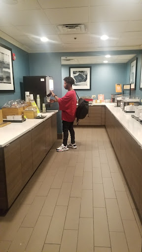 Breakfast was closed at 10 am. Juices, fresh squeeze juices, fat free & 2% milks, hot oatmeal, grits, sliced fruits, bagels, pastries, hard boiled eggs, yogurt, and make-your-own waffles. Friday & Saturday morning freshly cooked- sausage, scrambled eggs, seasoned potatoes, omelet, hard boiled egg. Sunday morning- bacon replaced the sausage. I had to inform front desk one day that they had put coffee in "hot water" dispenser.