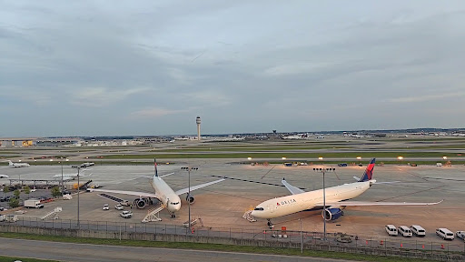 A Plane Spotter’s Paradise The true highlight of the stay was the private balcony overlooking Hartsfield-Jackson Atlanta International Airport—the world’s busiest airport and Delta Air Lines’ primary hub. From my vantage point, I had a sweeping view of the Domestic Terminal Concourses (T and A to E), the International Terminal (Concourse F), and both northern runways (08R/26L and 08L/26R). This setup was a dream come true for plane spotters, photographers, and aviation geeks. Watching aircraft take off and land in such close proximity made for incredible videography and photo opportunities.