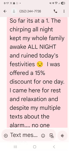 I have stayed at palm suites for the last 9 years. When we first started visiting it was amazing we were able to pick a room of our choice if it was available. The rooms are nicely decorated, they have a place to sit by the water, grill out, fish or just relax and a nice pool just wish it was open later but still overall nice. We really never had any complaints until 4 years ago there was a chicken bone wrapped in a rug on the floor, hair on the extra pillow and a old dried up bug in the corner I let the staff know and they refunded the night because they could not move me until the next day due to no other rooms available. The next year my room key was given out without my knowledge. I came back to someone (who I knew) sitting on the couch demanding that they was given a key and it was there room now. I went down to front desk they said they thought the person was with me and they had asked for a key to my room with my name so the law had to handle that situation After a battle with management over the phone for 2 wks I finally received 1 night reimbursed. I was so bummed about the last 2 stays I didnt even go last yr. So this yr I called and found out it was under new management so I decided what the heck we will try this again. First downfall was i couldnt request a certain room but they said I could put in a special request which I did top floor sound side. On my arrival I was happy to find out my request was given. We went to the room it was clean all except there was a stinky smell like fish coming from the fridge, just figured someone kept fish in there prior to my arrival no big deal. We decided to go visit some things and enjoy the ocean we got back around 9. At around 10:30 my husband & I decided to walk to the beach for a few mins only to get a call from the kids that the smoke alarms where going off so we ran all the way back to the hotel. The alarms went off 2 more times. After that chaos we decided to just go to sleep. We woke up the next morning and the room was at 80° but air was set to 67°. I seen a housekeeper & let her know she said she would get maintenance to check it out I explained to her that I would let her know when because my children where still asleep. I went down to get some coffee & let manager know even though he didn't seem to care he said he would get someone up there to check it out so I explained the same thing to him about my kids being asleep and I would let them know when they got up. I proceeded to go ahead and get the kids up, if you have kids you know when they open there eyes they want food lol so they got ready and we ran down the road to grab some McDonald's to bring back to the room. I left the do not disturb sign up because I dont like people I dont know in my room around my belongings if I'm not there. When I arrive back I find that the maintenance man had been in my room already trying to fix the air, it didnt look like any of my stuff was disturbed so I didnt say anything. He told us he wouldn't be able to fix it and he was going to talk to them about moving us. We ended up getting a different room around 1ish due to not having any clean rooms ready so we packed all our stuff up and moved half way down the hotel. It was a nicer room but the view not so much. We only came for 2 nights so we had to leave the next day. As we were packing we notice sandles that didnt belong to us under the bed and stains all over the inside of the comforter my children's slept in at that point I was just ready to go. At check out I asked them what was going to be done for my inconvenience he replied thats what I'm working on now. He only ended up putting 50% off the 1st night š” and at this point I'm not arguing I'm just ready to take my loss and go home! It's very sad because I used to really enjoy going to palm suites but it seems I have had 3 waisted trips in a rowš. **EDIT No one has tried to contact me Mr. Eagle. I did call your office & left all my contact information yesterday aswell and still...