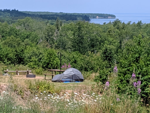 Read moreWent into this trip with high expectations from all the Google reviews and was not disappointed. The drive into the property is easily distinguishable off the road with large flags that say campground. Next is a 5 minute drive from the bottom of the hill all the way to the top. Firewood was always fully stocked for sale and there's 4 separate bathrooms that are regularly cleaned and stocked along the drive to the top of the hill. Our campsite was at the top, site 24. It overlooked grand island and lake Superior with breathtaking views. Each campsite has a small walk from the parking lot( maybe 25 yards at the most) and the bathroom are at most 60 yards from all the campsites. As far as bugs go there wasn't nearly as many in other areas of munising (I think because we were on top of the hill) but there were the occasional black fly here and there. The wind was rough one day and stole our canopy that we didn't stake down so make sure to secure your stuff if you plan to camp on the hill. All in all I'd give this place 6 stars if I could and can't wait to return in the Fall for...