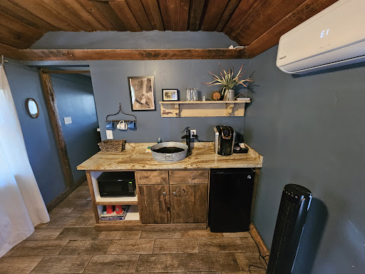 Cons: Missing screens to open windows at night for the cool mountain air. TV remote batteries were dead. Only enough coffee k cups for one night. Ceiling fans were installed but not working. The grounds perimeter was cluttered with items that need to be hauled to the dumps. Trash in the outside kitchen was overflowing and not attended to for the day. We could only find one ping pong ball. They have several cool string lights between cabins and over kitchen/recreation area that would have added to the ambiance of the property but 80% of the lights...